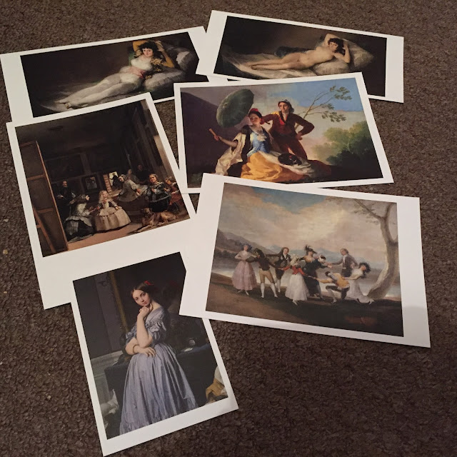 En Diciembre estuve en Madrid y hacía tantos años que no pasaba por el Prado que decidí hacerle una visita -que pienso volver a repetir pronto y no pudieron faltar las postales y la guía, un bonito abanico y un par de ellos más que compré a un vendedor ambulante en el paseo del Prado.